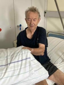 Am Montag (25.8.25) vormittags fiel einer aufmerksamen Nachbarin auf, dass Helmut im Auto sass, verwirrt war und hupte. Darauf rief sie eine Nachbarin mit dem Haustürschlüssel. Schnell wurde klar, er ist verändert und gehört sofort in ärztliche Hände. Dank des Notdienstes wurde er in das Krankenhaus Frankenthal in die Abteilung „Schlaganfall“ gebracht. Dort liegt er seither. Seine Symptome sind mentaler Natur, heißt, er kann sich nicht artikulieren, es kommt Wortsalat aus seinem Mund, wenn er redet und er ist extrem verwirrt. Da er körperlich überhaupt nicht eingeschränkt ist und er nicht versteht, warum er im Bett liegen soll, ist seine Behandlung nicht einfach. Nachdem er am Mittwoch sediert werden musste, weil seine Aktivität zu heftig war, schläft er viel und wir hoffen, er erholt sich langsam.